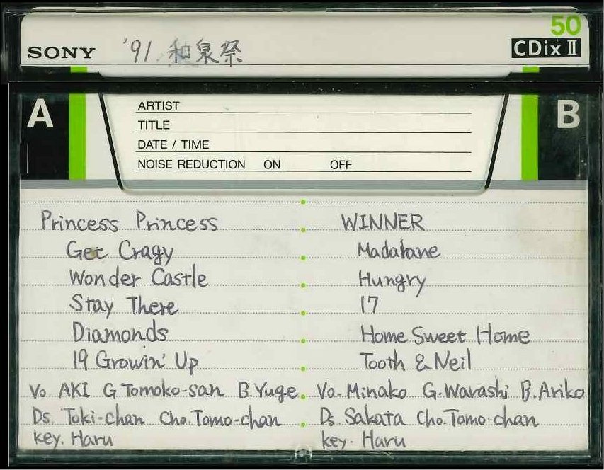 Vo:Aki, G:Tomoko-san, B:Yuge, Ds:Toki-chan, Cho:Tomo-chan, Key:Haru